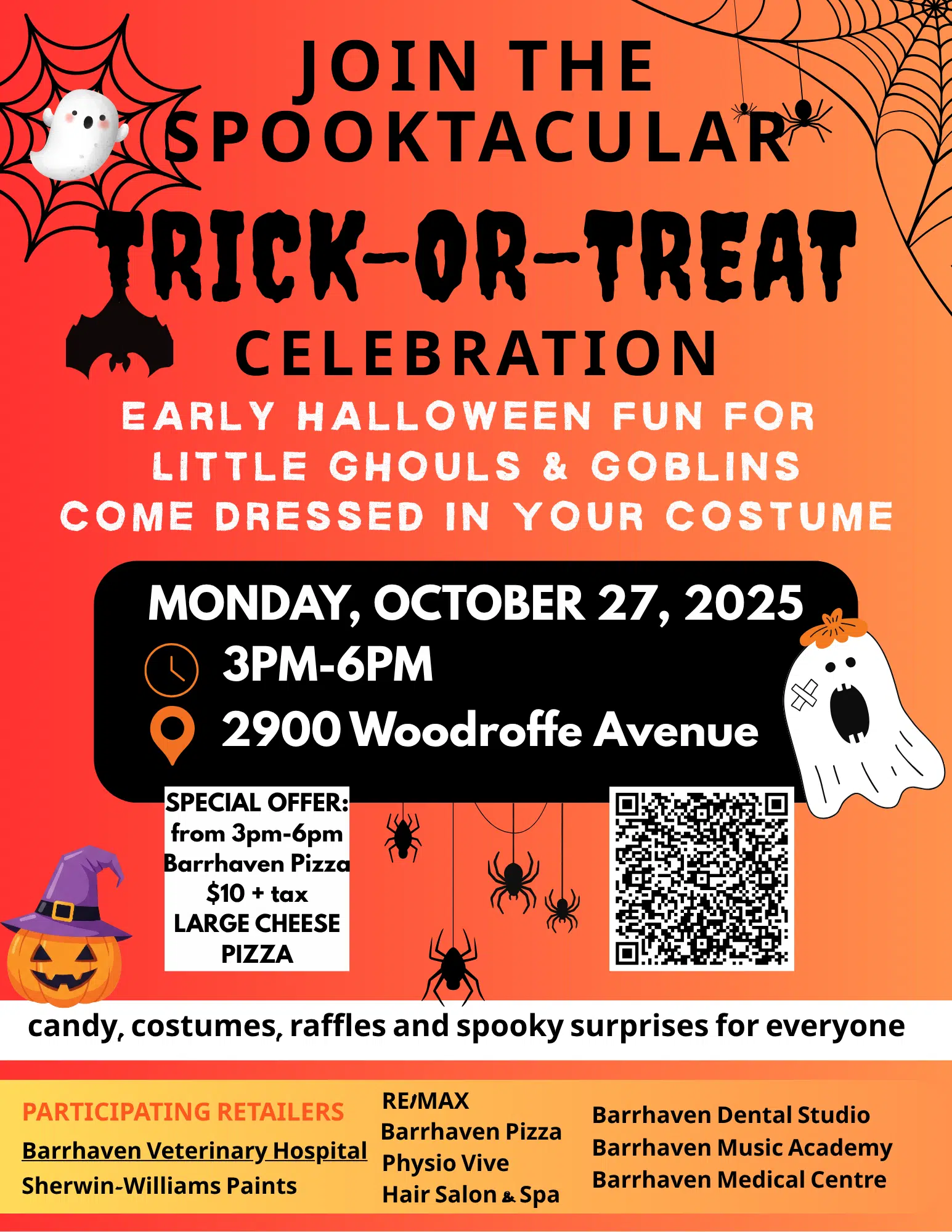 Join us for our Trick-or-Treat Celebration on Monday, October 27, 2025, from 3:00 PM to 6:00 PM at 2900 Woodroffe Avenue.