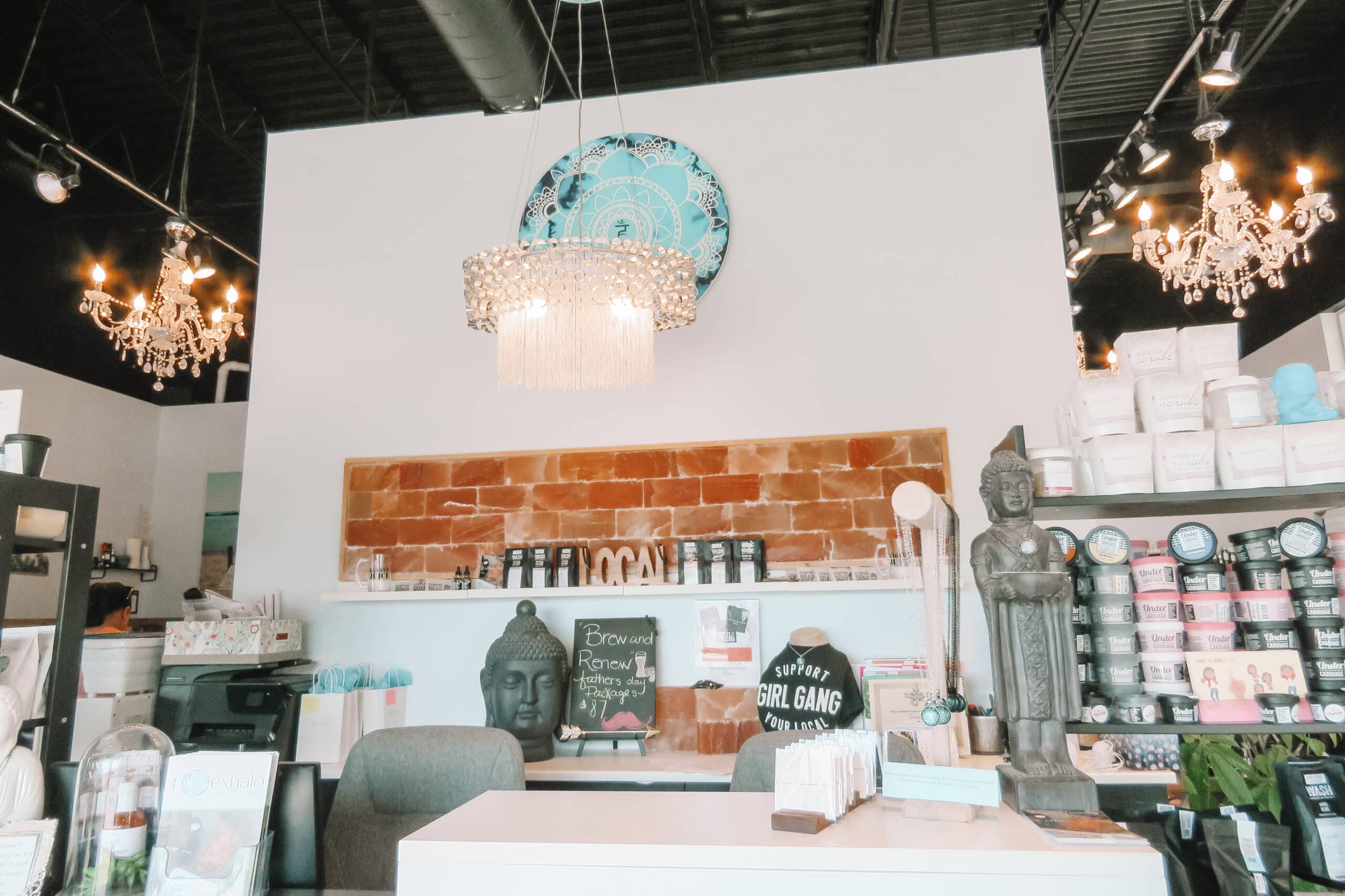 On top of their award-winning services and client care, exhālō believes in supporting those around them. For instance, the spa carries over a dozen locally-made products. Personally hand-picked beauty, wellness and jewelry surround the space and compliment the services and spa message – spread joy through the power of touch.